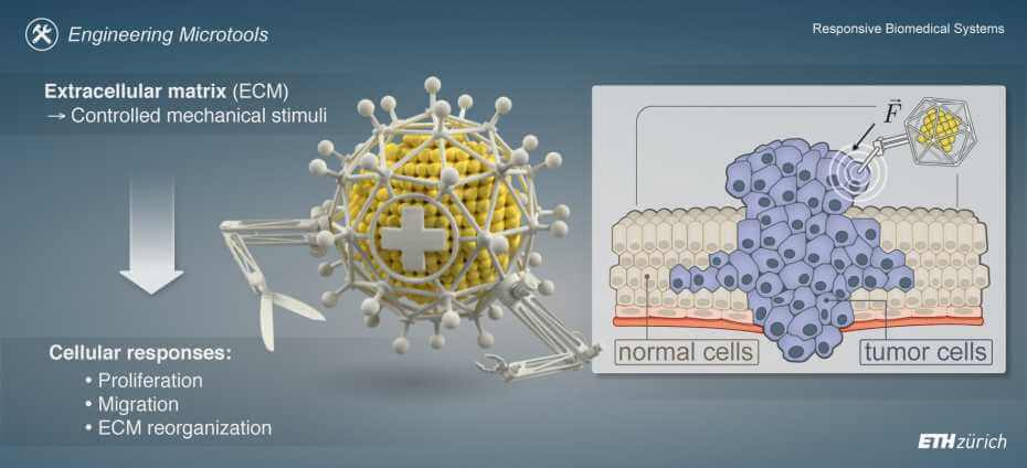 Our research in this field seeks to uncover new targets for treatment and mechanical cues that can be integrated into the design of diagnostic and therapeutic nanosystems. By using models that mimic tumors or simply the ECM, we are incorporating magnetic microrobots to apply controlled mechanical stimuli via custom magnetic instrumentation. This allows us to infer local mechanical properties, study cellular responses, such as proliferation, migration, and ECM reorganization, to better understand the influence of mechanical cues on tumor cell behavior.